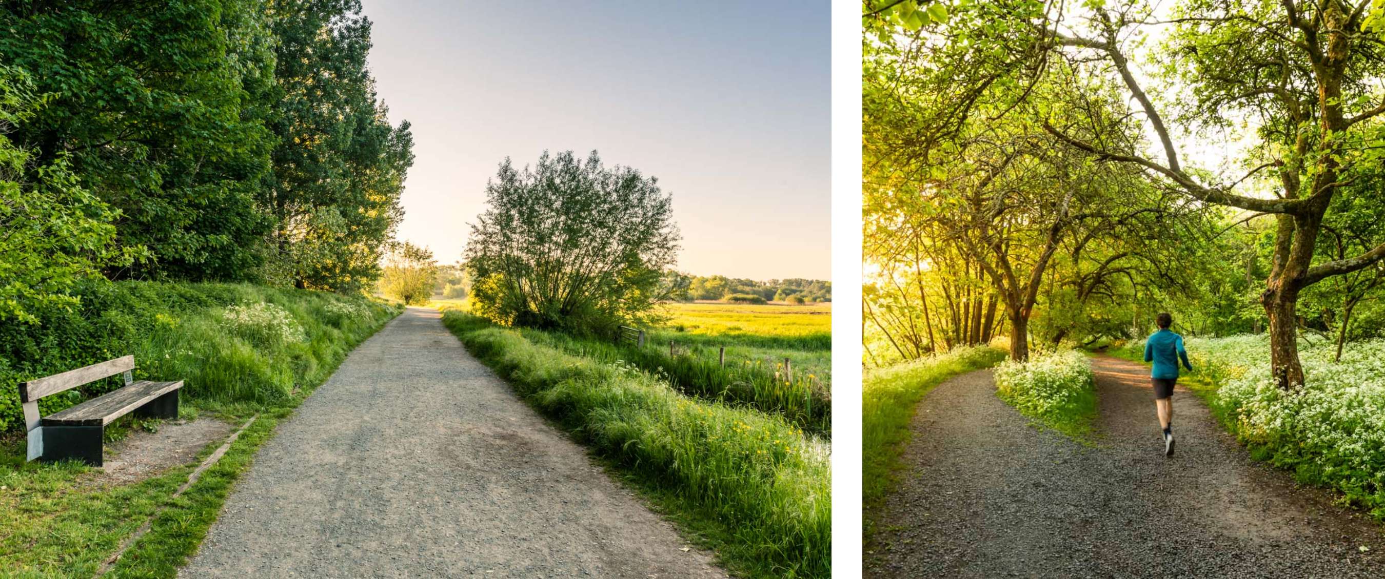 À deux pas de Bruxelles, dans la Promenade Verte, deux boucles racontent chacune leur propre histoire. La boucle verte vous fait explorer le parc du château de Gaasbeek : le sentier serpente le long d’un jardin-musée, d’un château et d’étangs, puis monte en pente raide et traverse une forêt d’arbres majestueux. Vous pouvez également opter pour la boucle bleue, qui passe par le parc Groenenberg. Celle-ci commence par une montée raide, puis vous traverserez un jardin à l’anglaise, passez devant un hêtre rouge centenaire et des prairies où des chevaux de trait brabançons vous encourageront tout en broutant. Après avoir gravi toutes ces montées, votre foulée ressemblera peut-être un peu à celle d’un cheval de trait. Vous pouvez bien entendu combiner les deux boucles