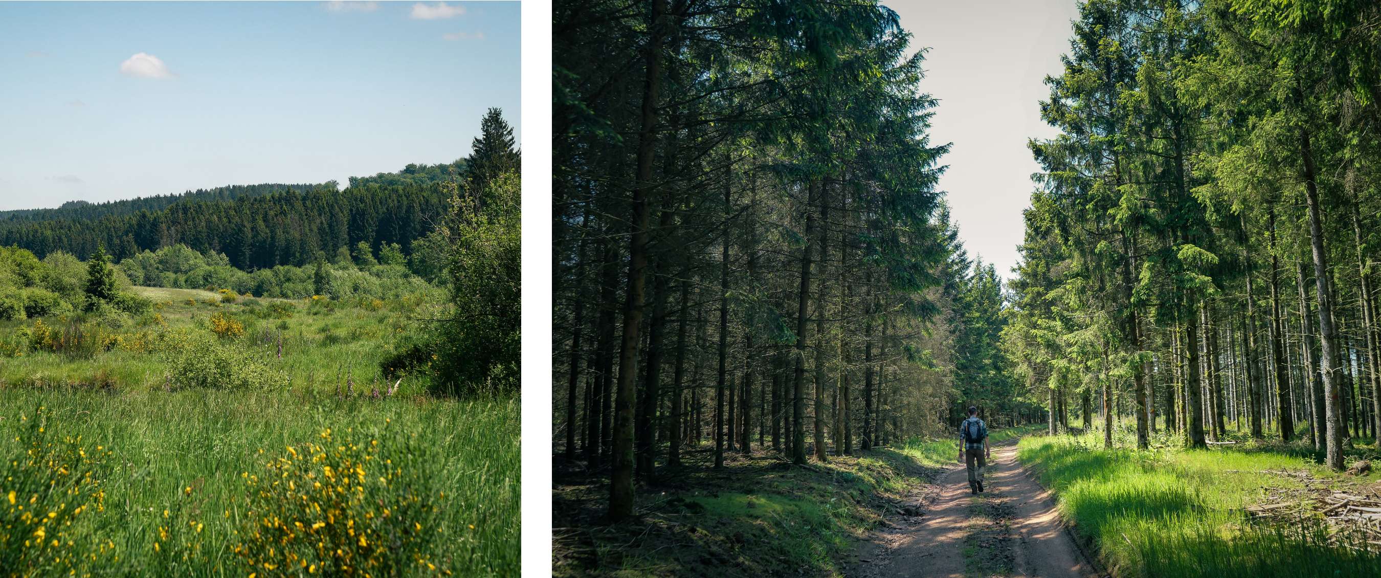 La forêt d’Anlier figure parmi les plus grandes zones boisées. Ici, on ressent pleinement la Waldeinsamkeit allemande : le sentiment d’être seul dans la forêt. Vous aurez plus de chances de croiser un sanglier qu’un promeneur. Deux boucles partent du hameau de Vlessart, suivent la Rulles, franchissent des passerelles en bois et montent jusqu’au belvédère de la Croix-Louis. Attention : en automne ou en hiver, les sentiers peuvent devenir très boueux.