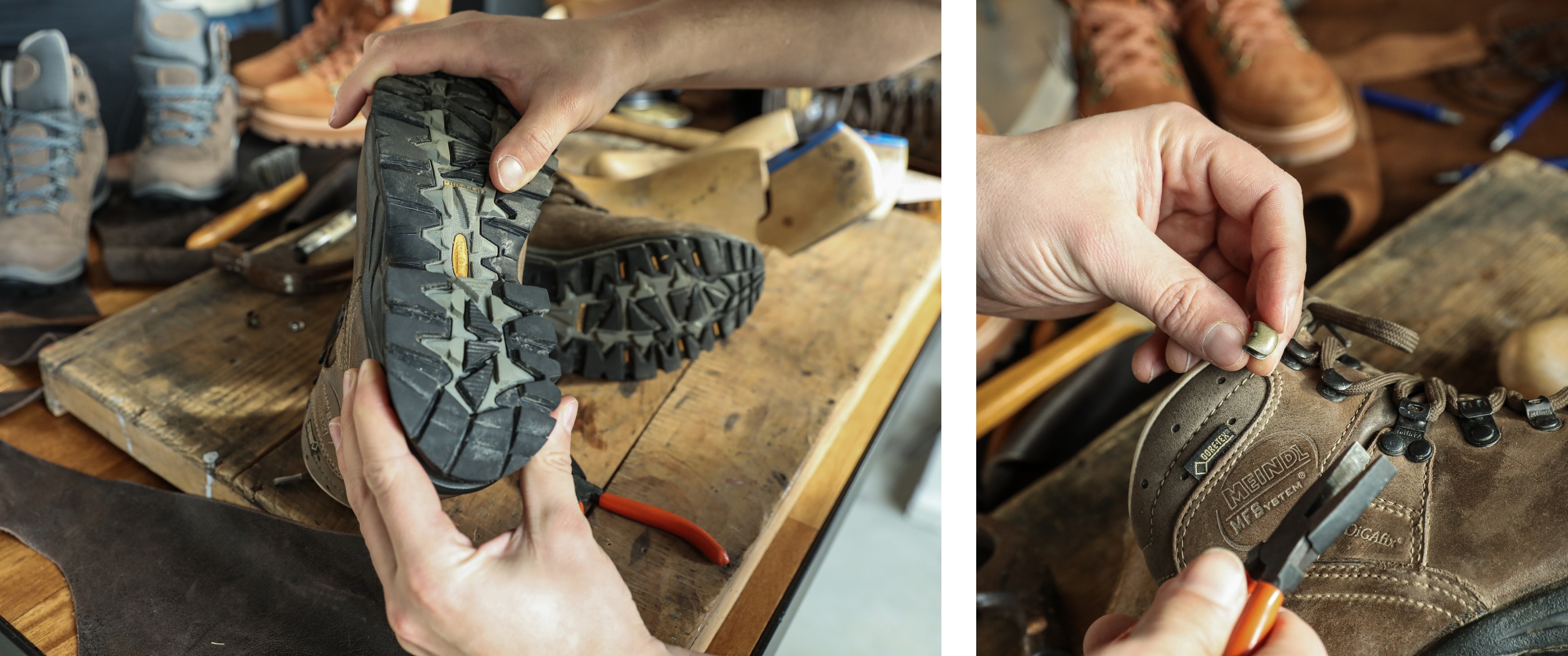 L’usure ne doit pas signifier la fin de vos chaussures Meindl préférées. Sonia et ses collègues voient souvent passer des chaussures qui, une fois réparées, repartent pour de nombreux kilomètres.